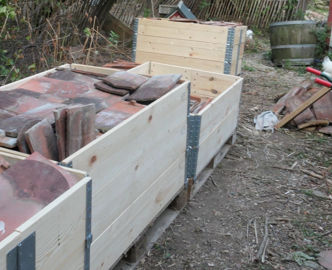 die Paletten-Aufsatzkästen wurden die Ziegel einsortiert,