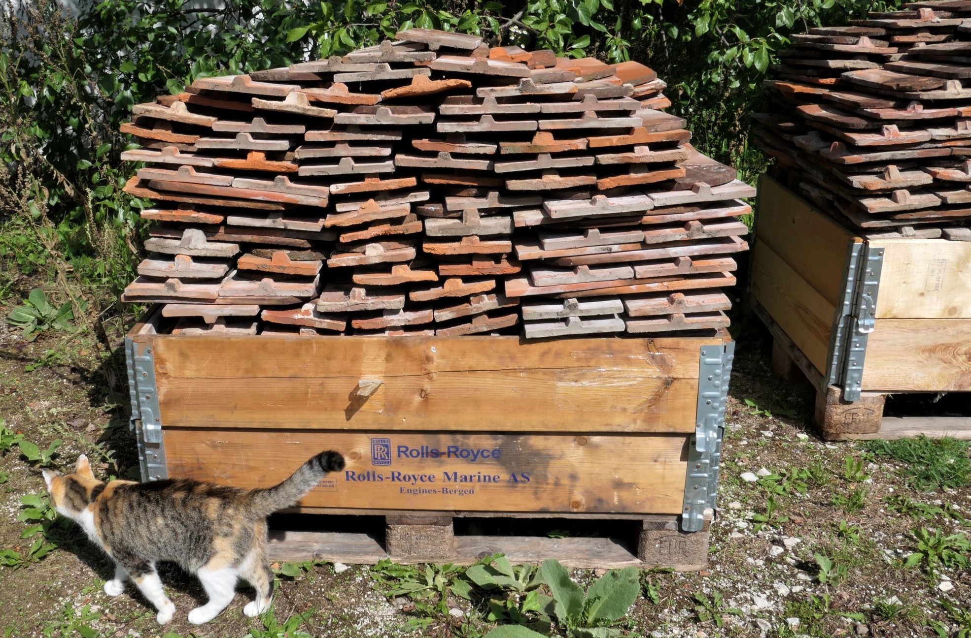 Es ist eine Mischung aus handgestrichenen Biberschwanzziegeln und