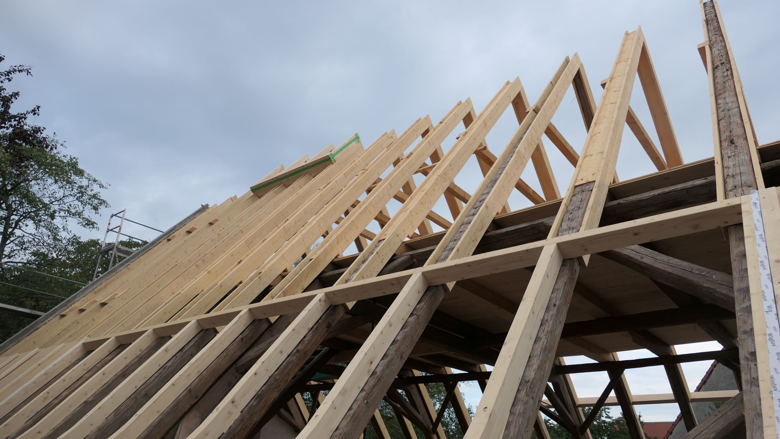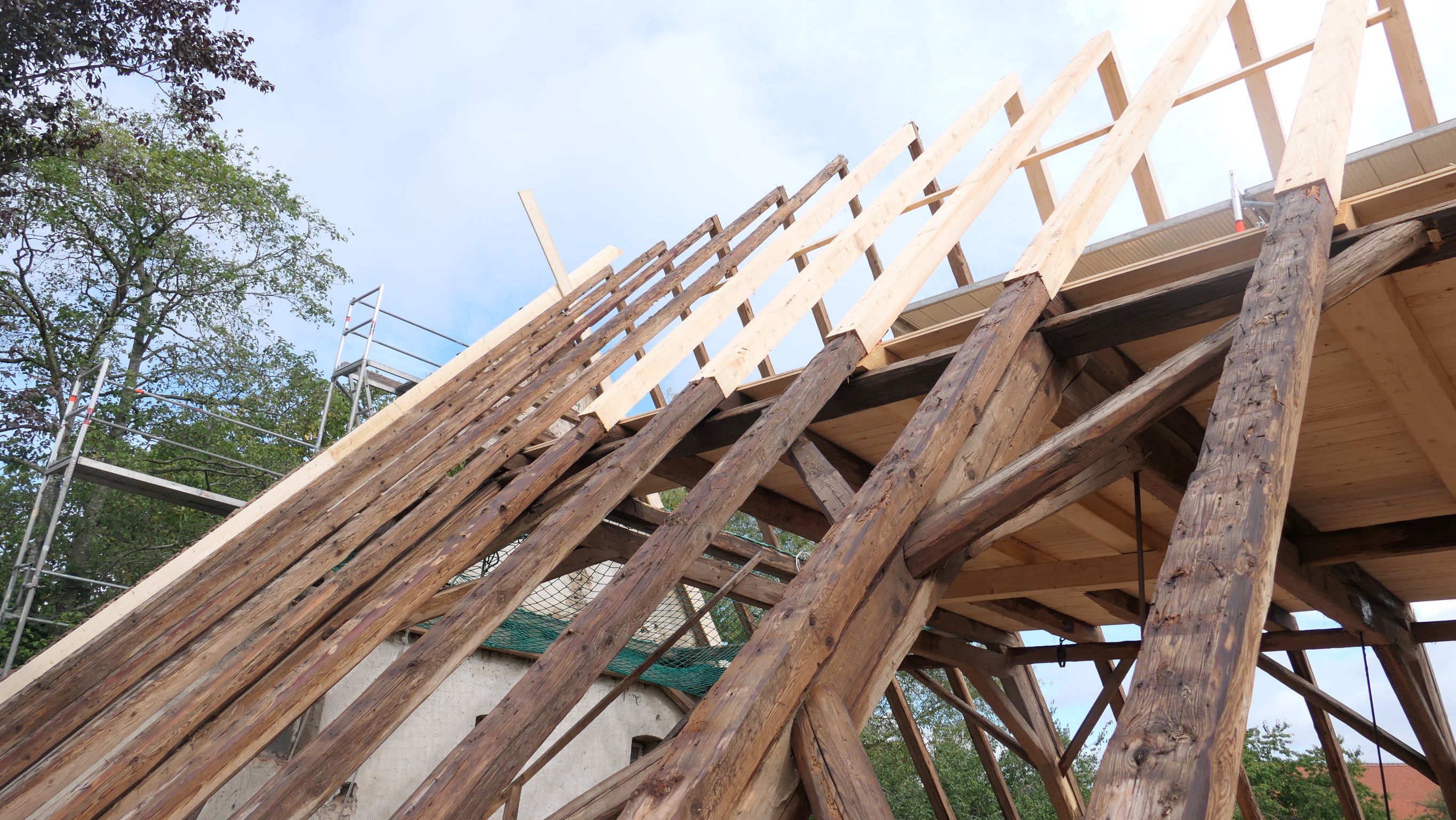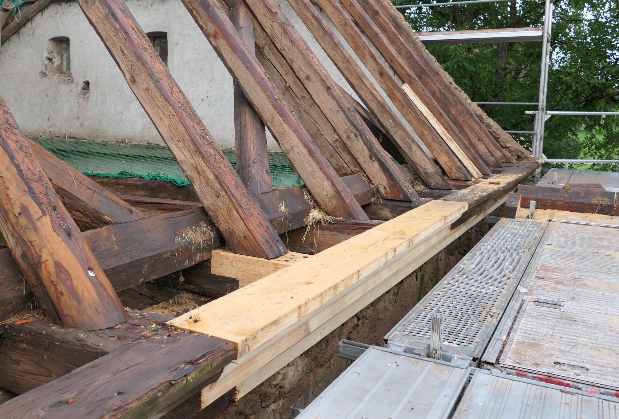 Dachstuhl wird repariert, einige Sparren müssen ganz ersetzt