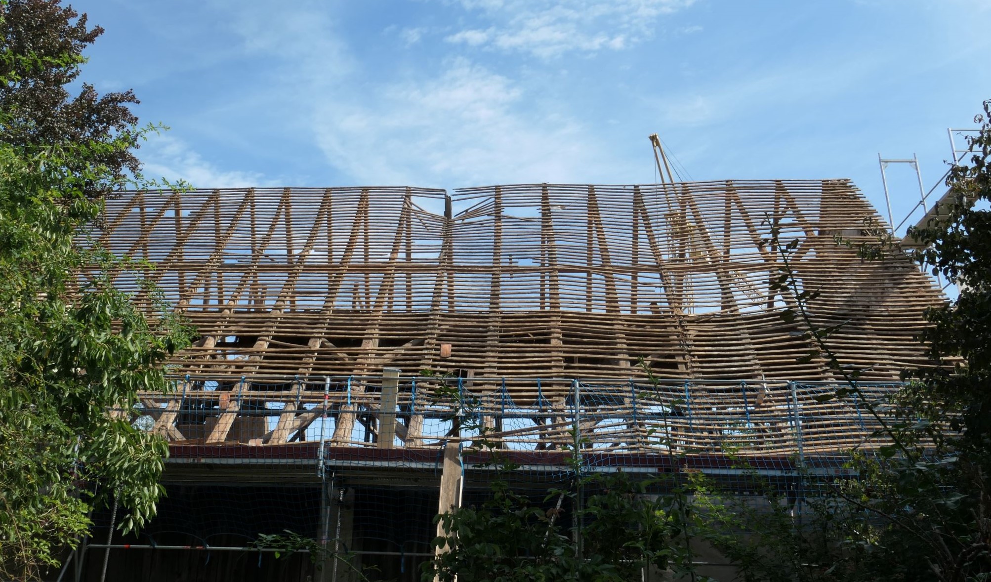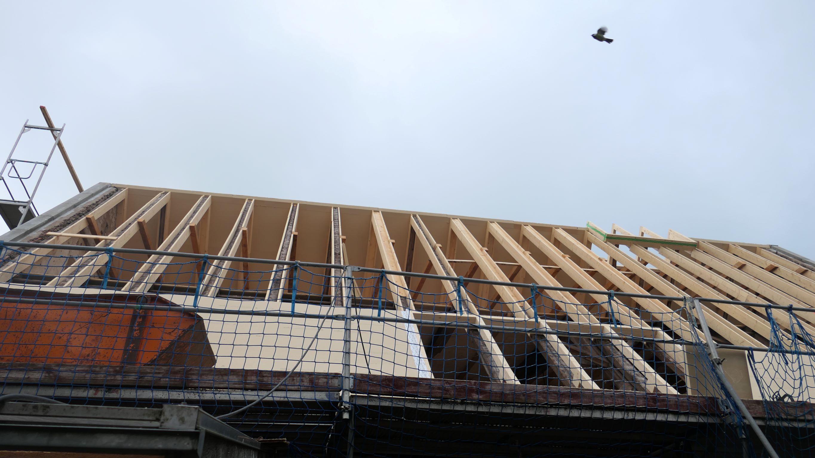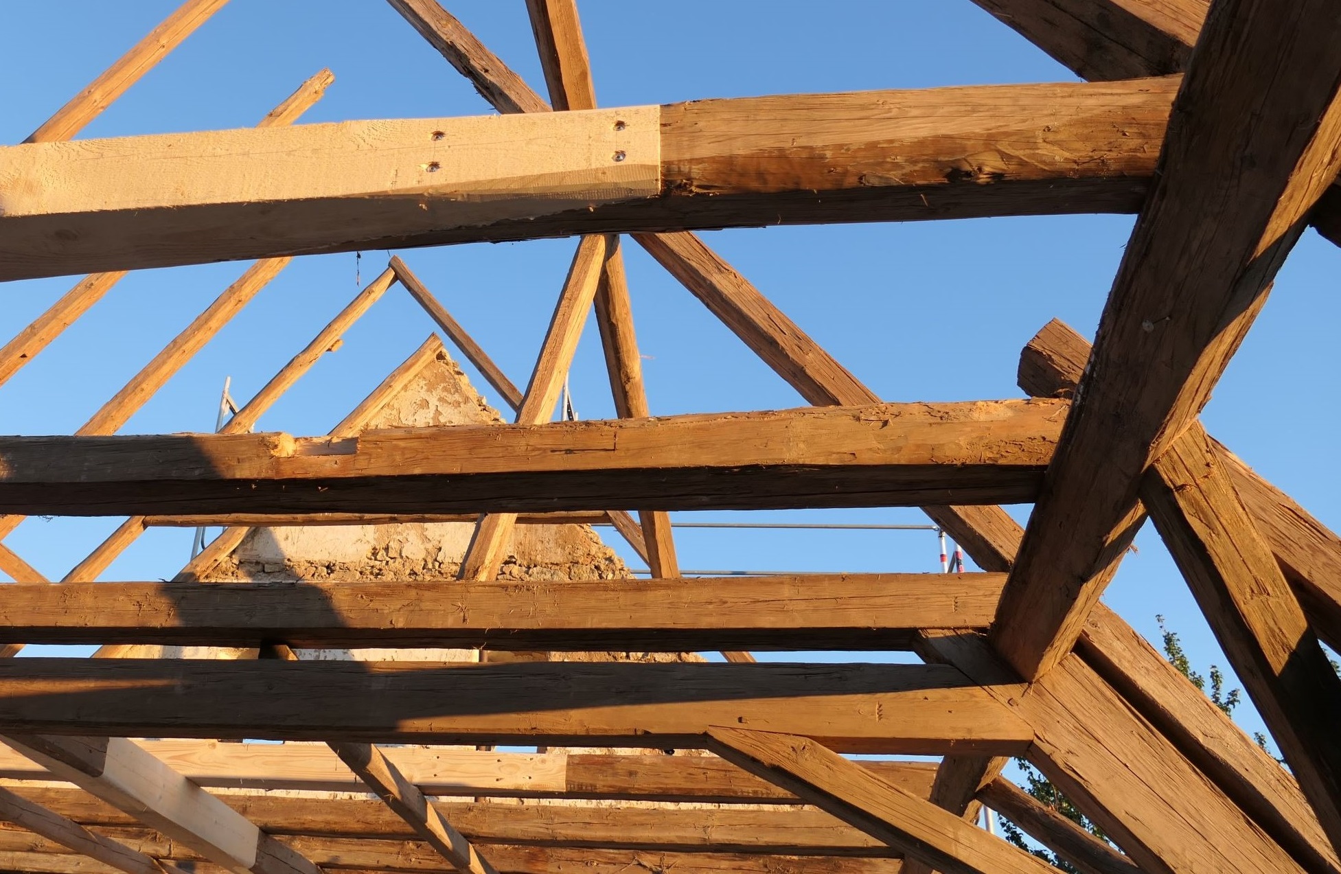Dachstuhl wird repariert, einige Sparren müssen ganz ersetzt