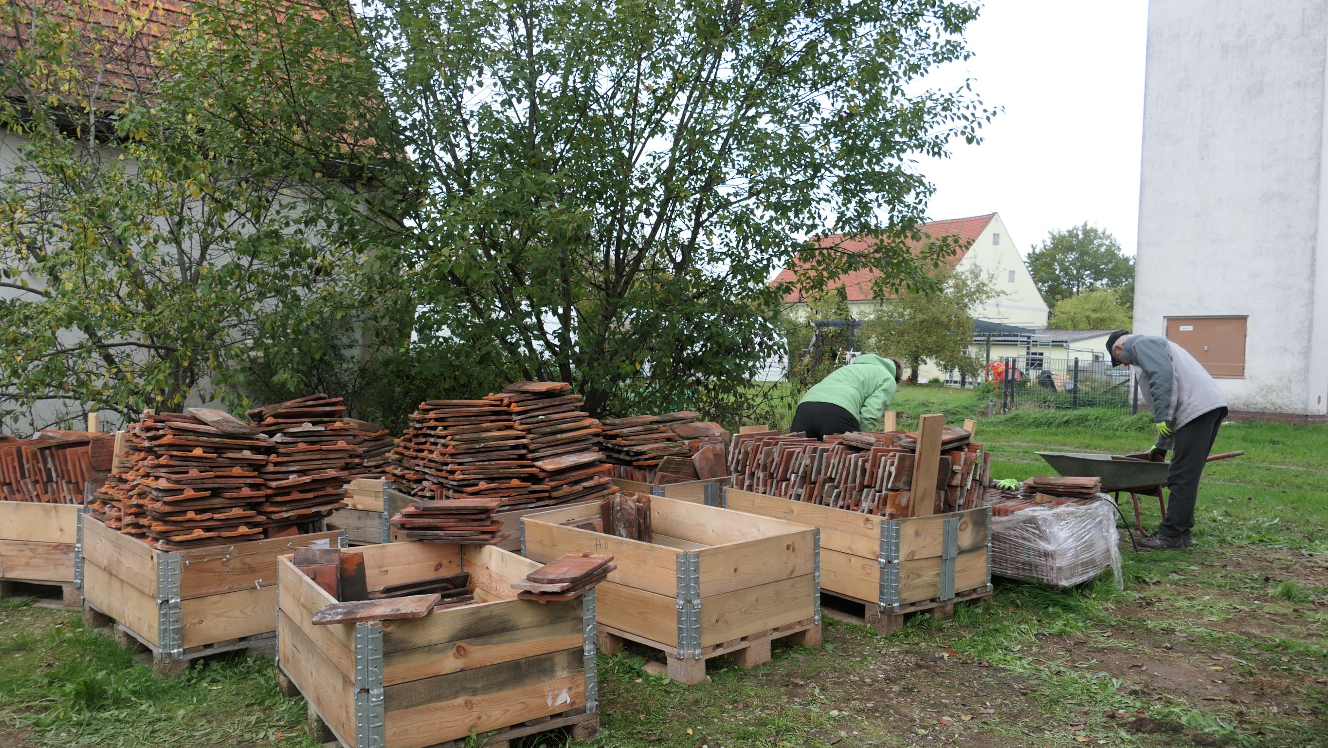 aber sortiert werden müssen die Ziegel trotzdem. Dafür