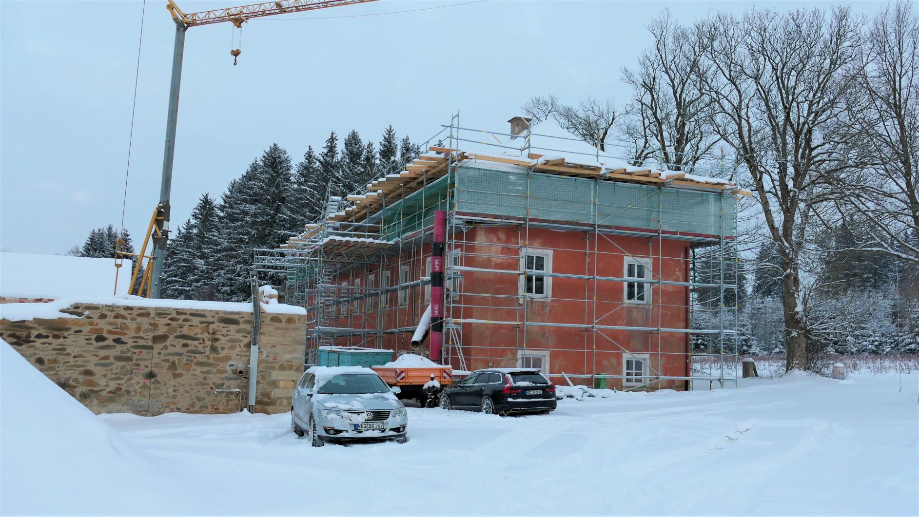 Baustelle im kalten Fichtelgebirge. Hochachtung vor den