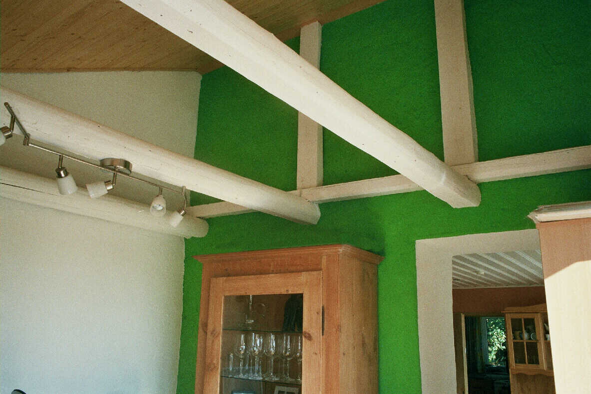 Die oberste Geschossdecke wurde nach Kfw-Vorschrift gedämmt und die Räume im OG neu mit Lehm verputzt und eine neue Gästeküche im OG eingerichtet. |