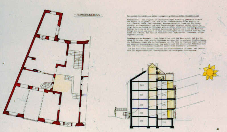 Die geplanten Projekte werden vorgestellt, weil sie an die jeweilige Situation angepaßt, gebaut werden können. Beide Konzepte sind gut durchgearbeitet und durchdacht. Das Modell für integriertes ökologisches Wohnen und Arbeiten in der Stadt war ein Beitrag zu einem Wettbewerb Ökologisches Bauen in NRW und erhielt dort einen 3. Preis. |