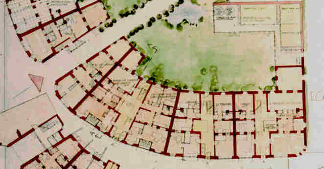 gereihten Häuser sind über den Hof auf der Nordseite