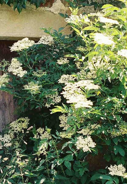 Außer den ca. 60 Rosen gibt es noch viele andere Blumen im Garten- manche, die sich von selbst eingefunden haben, wie oben der doldige Milchstern, eine Bachblüte, und die vielen Holunderbüsche. Viele schöne Blumen habe ich gepflanzt als Bienen- und Augenweide: Akelei, Mohn, Sonnenblumen, Malven, Stockrosen, Ringelblumen, Phloxe und Astern, Madonnenlilien und Rittersporn Und natürlich Kräuter: Salbei, Weinraute, Herzgespann, Thymian, Liebstöckel, Wermut, Beifuß, Rosmarin, Borretsch, Angelika, Mutterkraut, Marienkraut... |